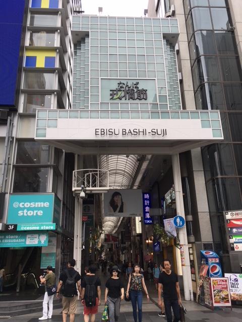 大阪の道頓堀のグリコの看板がある戎橋を渡って難波駅に向かうときにこの戎橋筋商店街を通りました。道頓堀には法善寺経由できたので、行きには通らなかった商店街です。左右に飲食店が並んだとても賑やかな通りです。戎橋もそうでしたが、外国人観光客がたくさんいました。