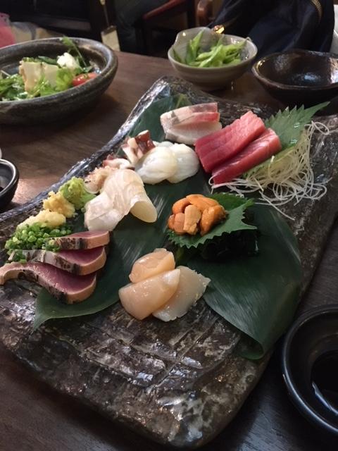 メニューは幅広く刺身から焼き鳥まで揃っています。特に、名物のつくね串が、ハンバーグくらいのサイズがあり食べ応えがありました。