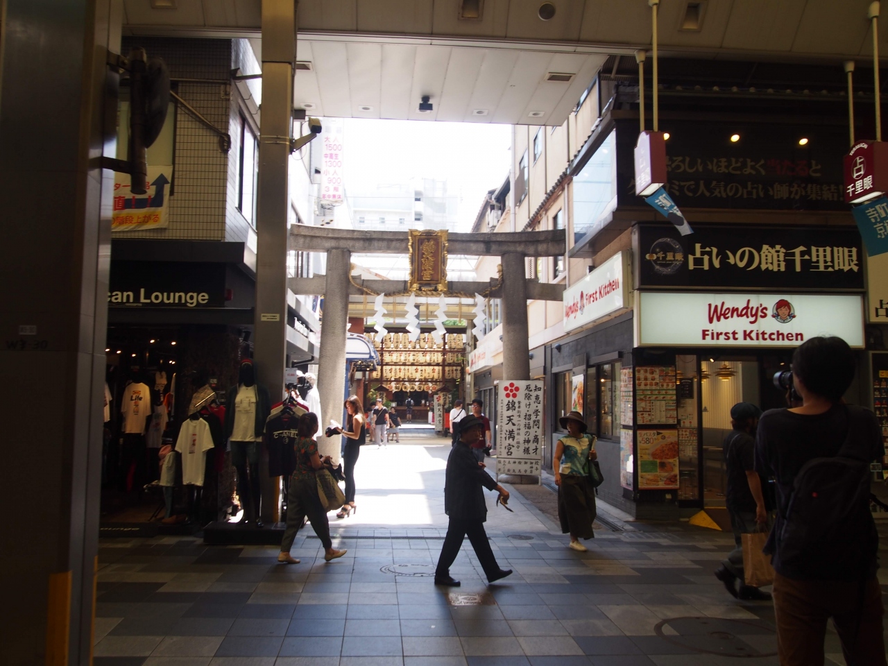 錦市場の東端に位置しています。アーケードのある錦市場を西側から歩くと突き当りがこの錦天満宮となります。錦市場の西側はふいに商店街が途切れるので、西端から錦市場に入り東に位置するこの錦天満宮を目指すのがお勧め。