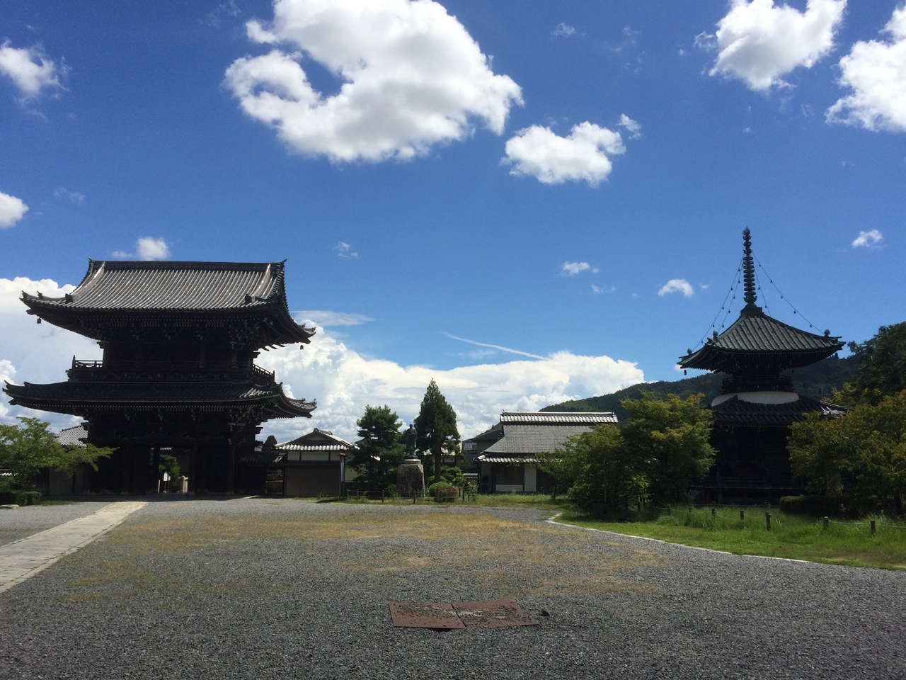 本堂から広い境内を見渡すと仁王門と同じぐらい大きく、離れていますが並んだ景観は迫力がありました。塔は二十の塔のような外観で、仁王門と本堂と共に京都府の指定文化財でもあります。江戸時代の1700年代に建てられたので古めかしい建物でした。