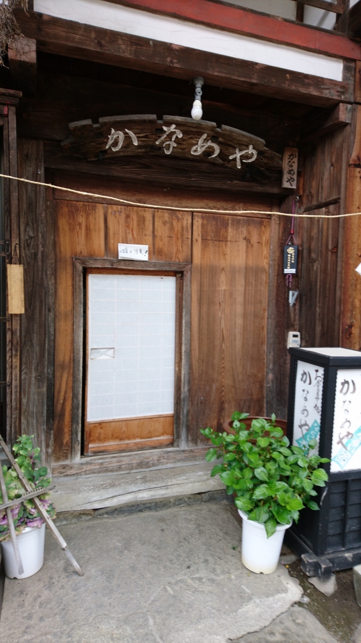 古い古民家を利用したお食事処のかなめやさんは入口にぶどう棚がありオシャレな感じです。