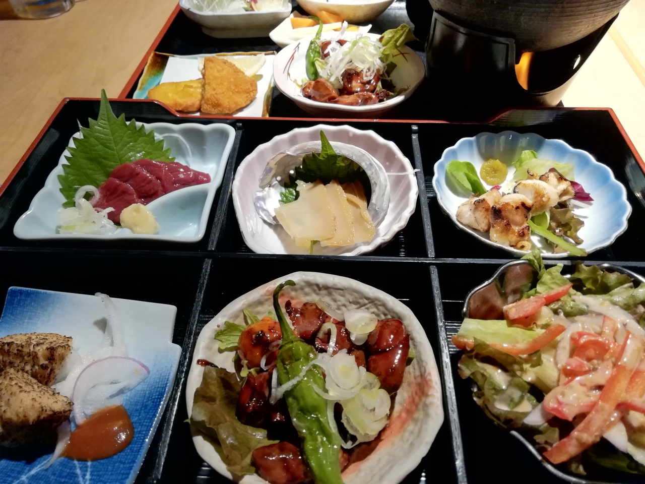 馬刺しが一番良かったです。残念ながら鶏のもつは私には無理でした。