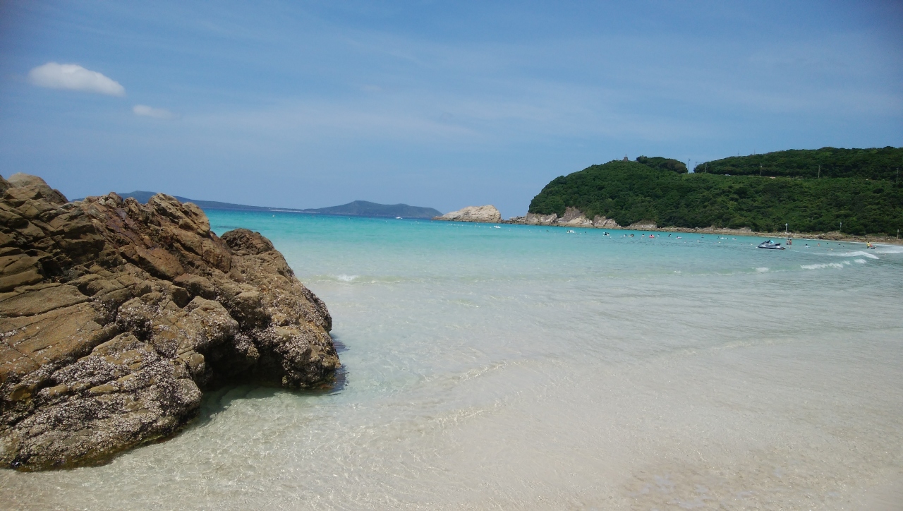 天気の良いときにいったので、ものすごい海がきれいだった。砂浜もきれいで、観光バスでいったので時間制限があるし、泳いでないですがもっとゆっくりきれいな海をみていたいとおもうような場所でした。砂浜がきれいだが、岩場もあり、そこにはフナムシがいるので岩場にいかないほうがいいかも。