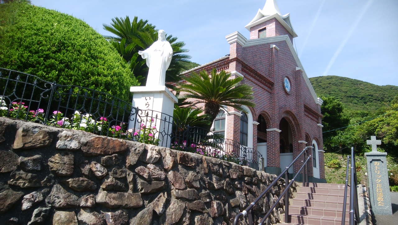 五島港のある市内からだいぶ距離があります。こちらの協会はルルドがあることで有名です。水を飲むことができるようになっています。教会の中は写真撮影ができませんが、外は可能なので、ルルドの像などは写真にとれます。
