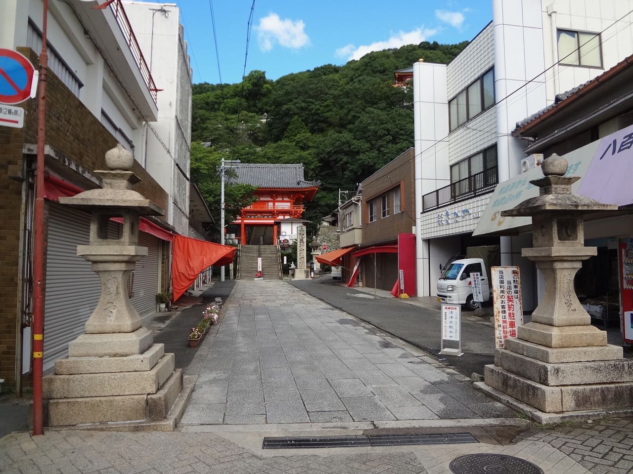 石灯籠の所を右に入ります。その先、紀三井寺の裏門