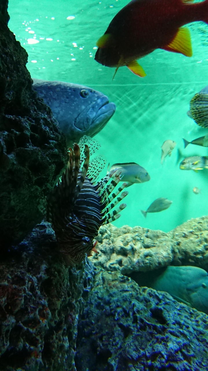 葛西臨海水族園には沢山の水槽があり、安い入園料で存分に海の生物を楽しめます。中でも圧巻はマグロの大水槽ではなく、「南シナ海の水槽」 だと思います。本当に椅子にでも座ってもっと時間をかけて楽しみたいと思いました。頭にコブがあるナポレオンフィッシュ、 巨大魚のタマカイ 、ミノカサゴなど大型、中型の特色ある魚が飼育されていて見飽きる事はありませんでした。