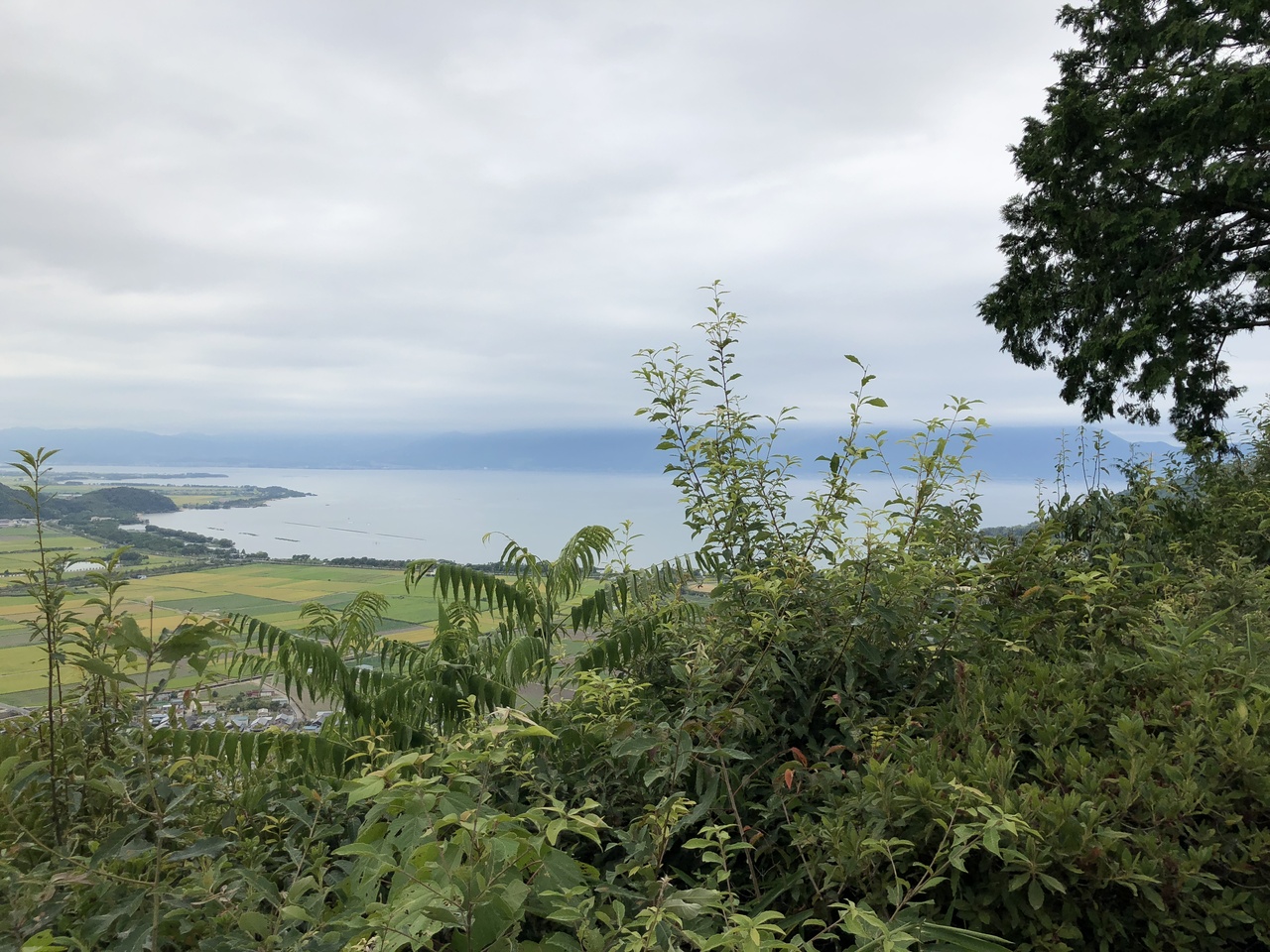 八幡山ロープウェイを降りた付近に石垣が広がる景色が望めます。八幡山城址、天正13(1585)年に豊臣秀吉の甥である羽柴秀次が、安土城に代わるものとして築城しました。織田信長が築城した安土城は籠城を踏まえた軍事拠点としての機能よりも、その外観からは政治的な機能を優先させて作られたものと言われるのに対し、八幡山城は城を囲む堀として現在に残る八幡堀を携えた山城となっており、戦闘に城を利用する緊迫した時代背景が反映されています。