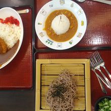 朝8時頃、朝食を食べに寄りました。お盆前の週末で、フードコートはお食事をしている人で混んでいました(混んでいましたが、席はすぐに見つけられる程度でした)。24時間営業のフードコートは、新しくて、きれいで、広く、とても快適でした。しらす丼ざるそばセット、ざるそば、お子さまカレー、コロッケカレーなどを頼み、家族でシェアしていただきました。私はしらず丼をメインにいただきましたが、体にやさしく、美味しかったです。2歳の子どもも、しらすをよく食べました。