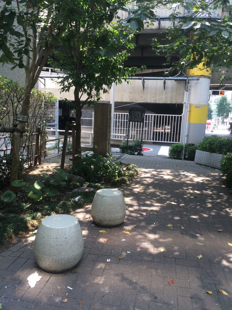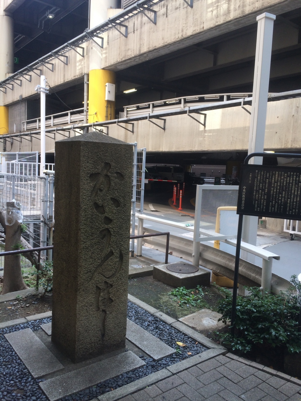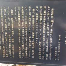 今は、橋はなく、また川もなく道路になっていてあまり目立たない場所に親柱がありました。明治時代は石橋だったとのことで、関東大震災で壊れ、現在はミニ公園となっていて木陰があり椅子もあります。周りを見渡しても橋があったとは思えない場所でした。