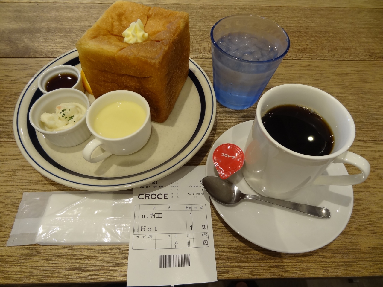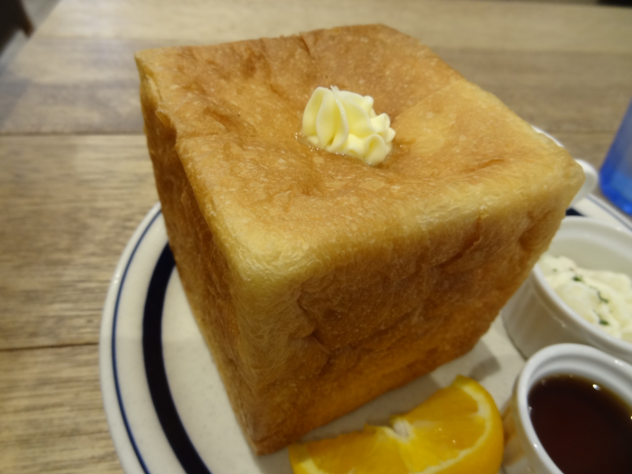 午前8時少し過ぎにこのお店の駐車場付近に来たら、すでに50人ほど並んでいました。50台ほどのスペースの駐車場にかろうじて駐車。さっそく列の最後尾に。8時半の開店と同時に40人ほどは店内に。私の前の7・8人までが入店できず。30分ほ待って、ようやく店内に。人気のサイコロトーストをオーダー。サイズにびっくり!何と10cmの立方体です。上にホイップ状のバターが乗っかっています。他にはポテトサラダとコーンスープ、もちろんホットコーヒーも。エ!と思ったが、ナイフとフォークもあります。ナイフとフォークでこのビッグなトーストと闘う。中はフワフワとしていて、口に入れるとフワッとパンの甘みが口いっぱいに広がる。なかなかの美味。サラダとスープとの相性も抜群です。コーヒーも香り高く苦みとコクのバランスがいい。モーニング好きならイチオシのお店です。大人気店になるのも納得です。帰り際に店内の棚にあったパンを段ボールごと買っちゃいました。