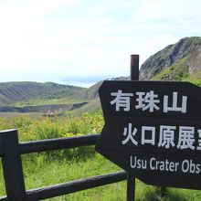 有珠山ロープウェイの山頂駅から徒歩で10分程度山を登ると有珠山火口原展望台に着きます。展望台からは、今も噴煙を上げる火口のほか、有珠山、洞爺湖、昭和新山、更には噴火湾に面した室蘭の街並みまで見えます。