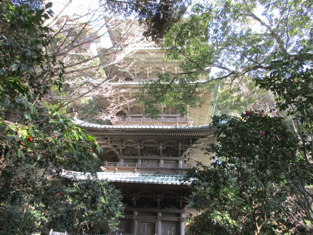 江ノ電江ノ島駅から江の島方面の反対側に進み右折して道なりに進むと江ノ電が走る道に合流した前にある龍口寺に歩いて5分ぐらいで着きます。龍口寺は日蓮宗のお寺で境内には日蓮上人が幽閉されていた洞窟や五重塔や仏舎利塔など見どころ豊富で見ごたえありますので江ノ島散策の際は足を延ばして参拝に訪れることをお勧めします。仏舎利塔や五重塔は急な階段を上りますので軽装が良いと思います。また、寺院前は江ノ電を撮影するのに良いスポットです。