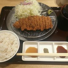 カツは小さ目にカットされていて、大根おろし、ソース、お醤油、わさび等つけていただきます。