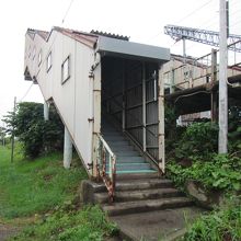 下り線へは36段の階段の跨線橋で渡りますが、下り線ホームからも外へ出ることができます。