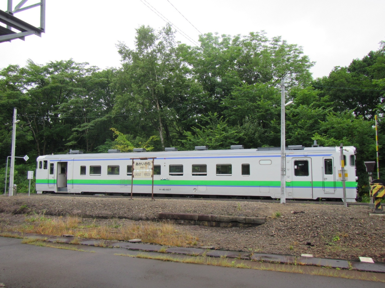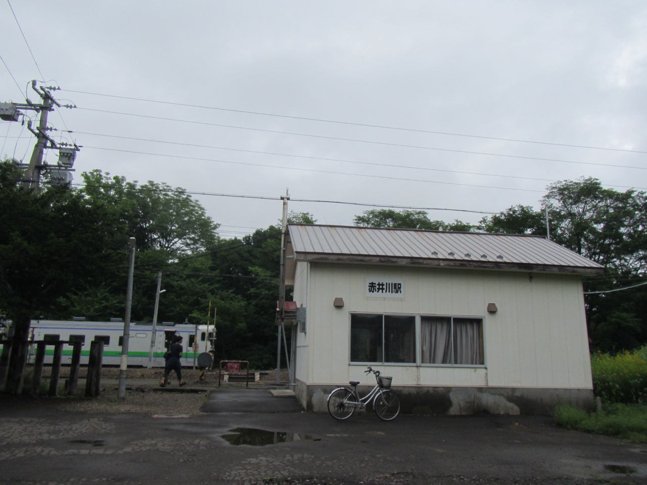 観光地の大沼公園駅の隣駅だというのに、赤井川駅は駒ケ岳山麓の森の寂しい場所にあって、500mほど離れた国道にでるまでお店などはありません。