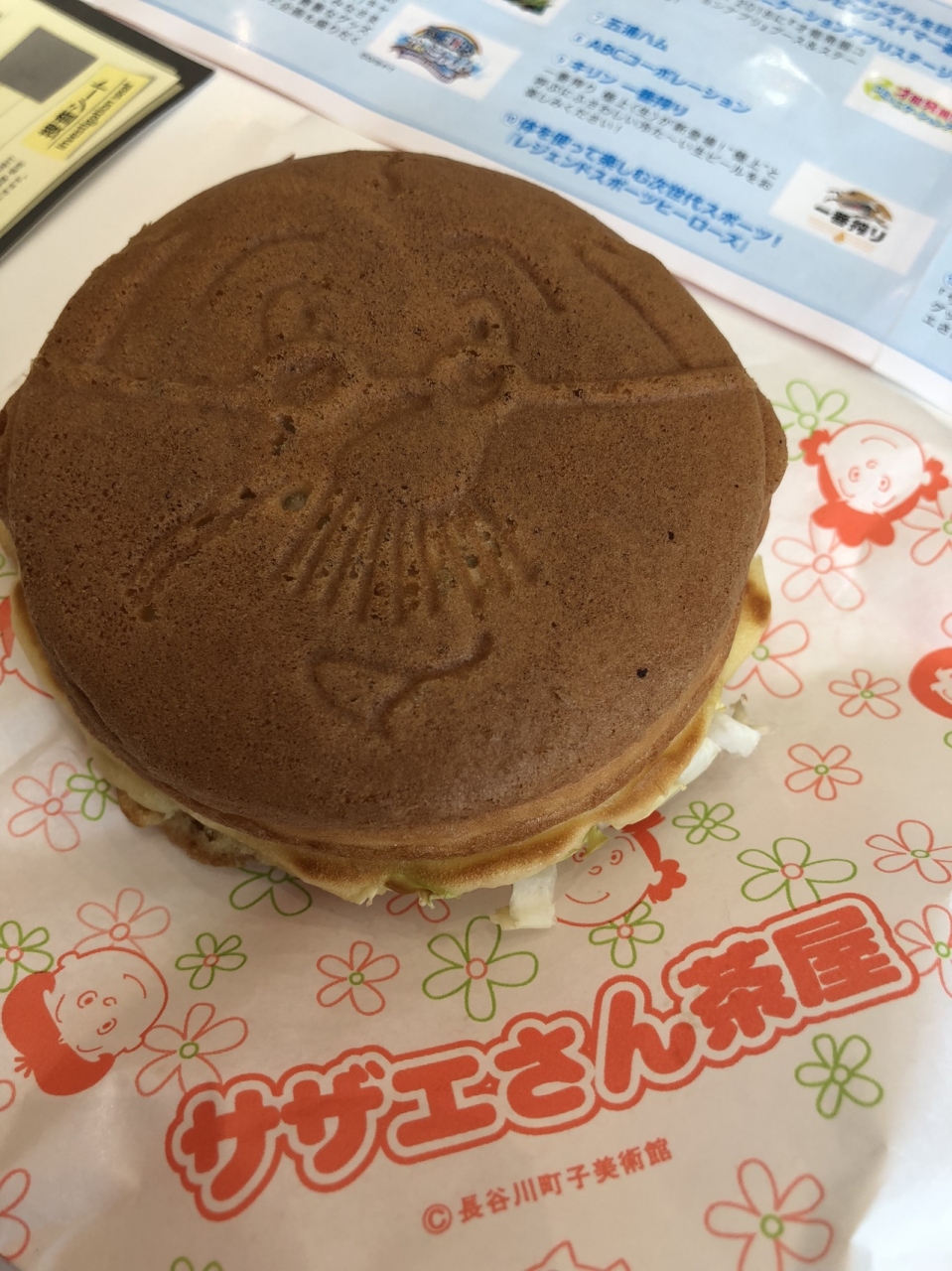フジテレビ本社のシアターモールにあるサザエさんのお店です。夏祭りが開催されていたので大混雑でした。サザエさん焼、波平さん焼、タマ焼などがありますが、もんじゃ味が特にオススメです。マヨネーズやもちチーズ味があって美味しかったです。