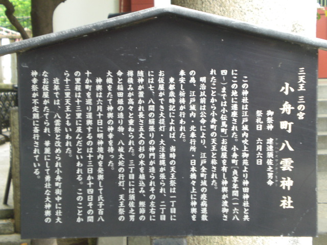 小舟町のハ雲神社は、三天王の三ノ宮として、重要な役割をになっていたそうです。