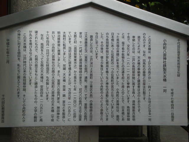永い伝統を有する小舟町のハ雲神社を訪れ、神田明神の大伝馬町の八雲神社及び小舟町の八雲神社の役割や由緒に触れることができ、本当に、有意義な訪問となりました。