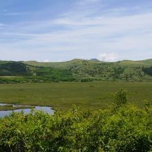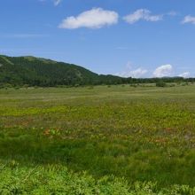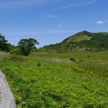 登山道からは湿原を一望することができるが木々に遮られるところも多く、風景の広がりを満喫できる場所は意外と少ない。