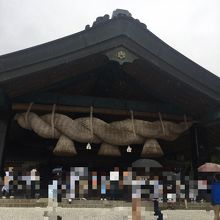 出雲大社の1番奥にある神楽殿です。こちらには社務所もありお守りをいただくこともできます。こちらの神楽殿にかかるしめ縄の大きさにとてもびっくりしました。定期的に交換しているようで、こちらのしめ縄を作るところも見学できる施設が近くにあるようです。そちらも次回は行ってみたいです。