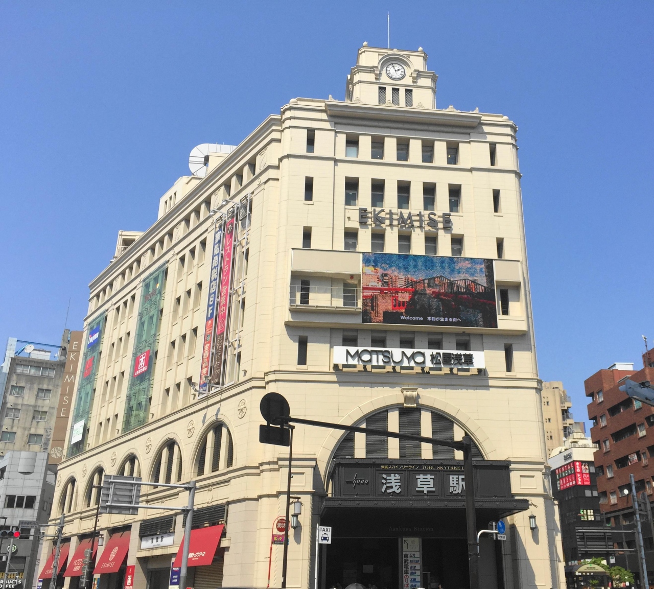 松屋の浅草店は、アール・デコ調の外観が素敵です。