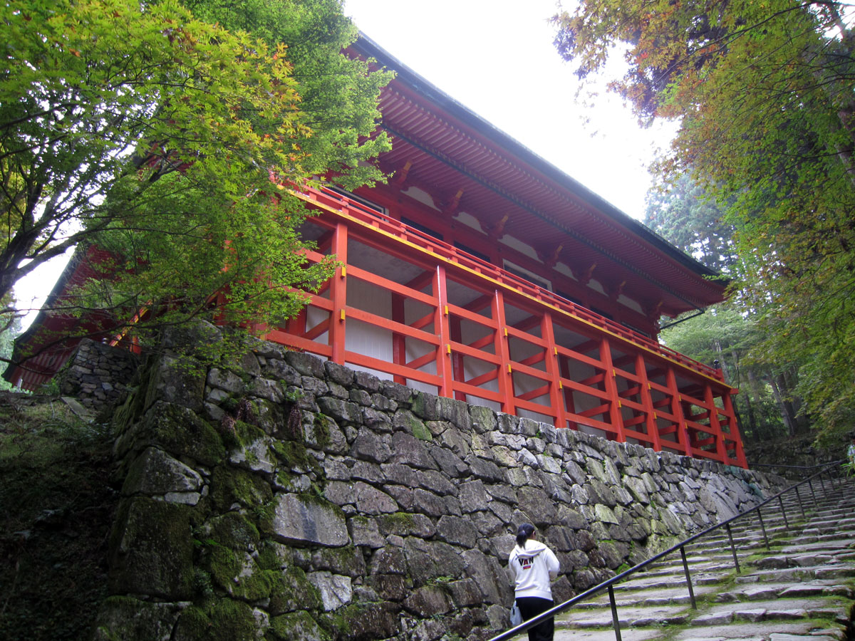 比叡山の3つあるエリアのうち、横川エリアの中心的な建物と言えるのがこの横川中堂です。お堂の麓にあるバス停から登って行くと、森の中に舞台のような朱塗りの脚が見える風景は美しい風景でした。