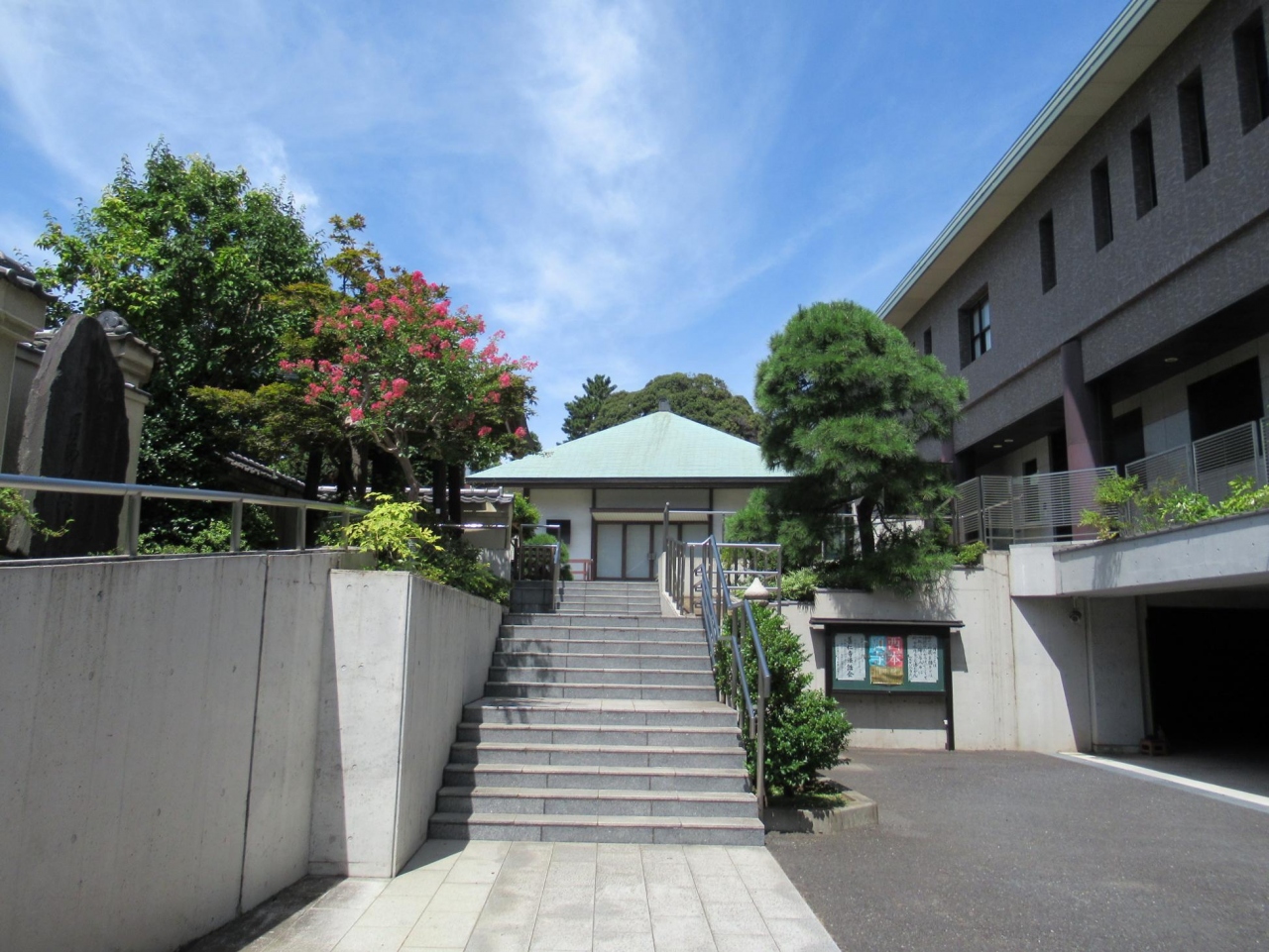 通り沿いに豪邸のような門と3階建ての建物があり、門柱の表札を見ると寺号があるので寺院ということが分かります。