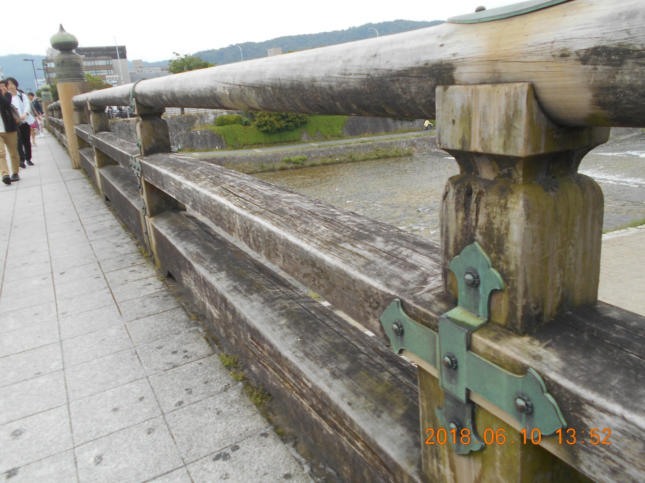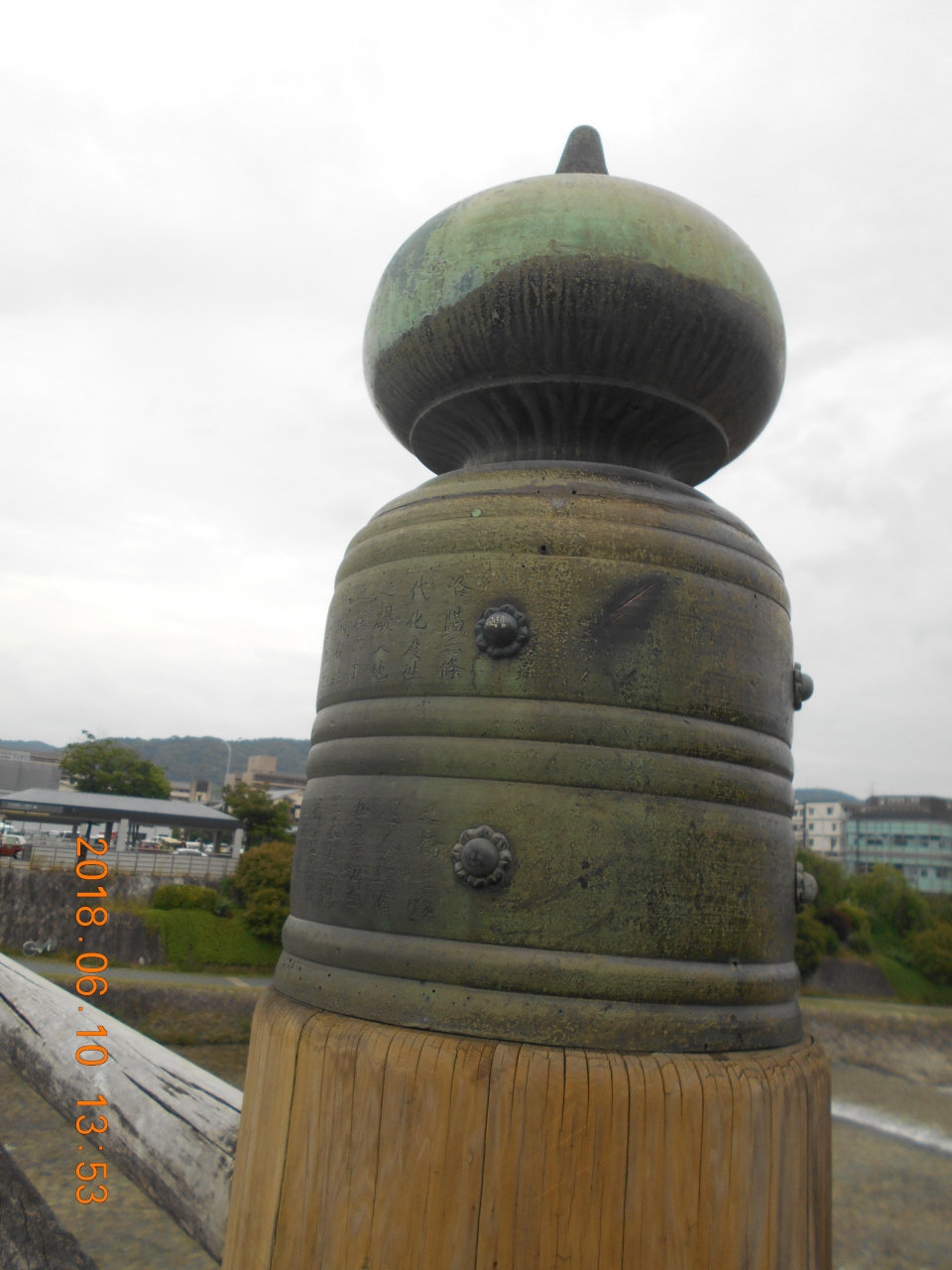 弥次喜多像の横に三条大橋の擬宝珠の刀傷について 度の擬宝珠についているかなどが書いてあったので よく見ると気が付くという程度で ふつうに通り過ぎて気が付くというものではありませデしたが 歴史の一部に触れたような気がしました。
