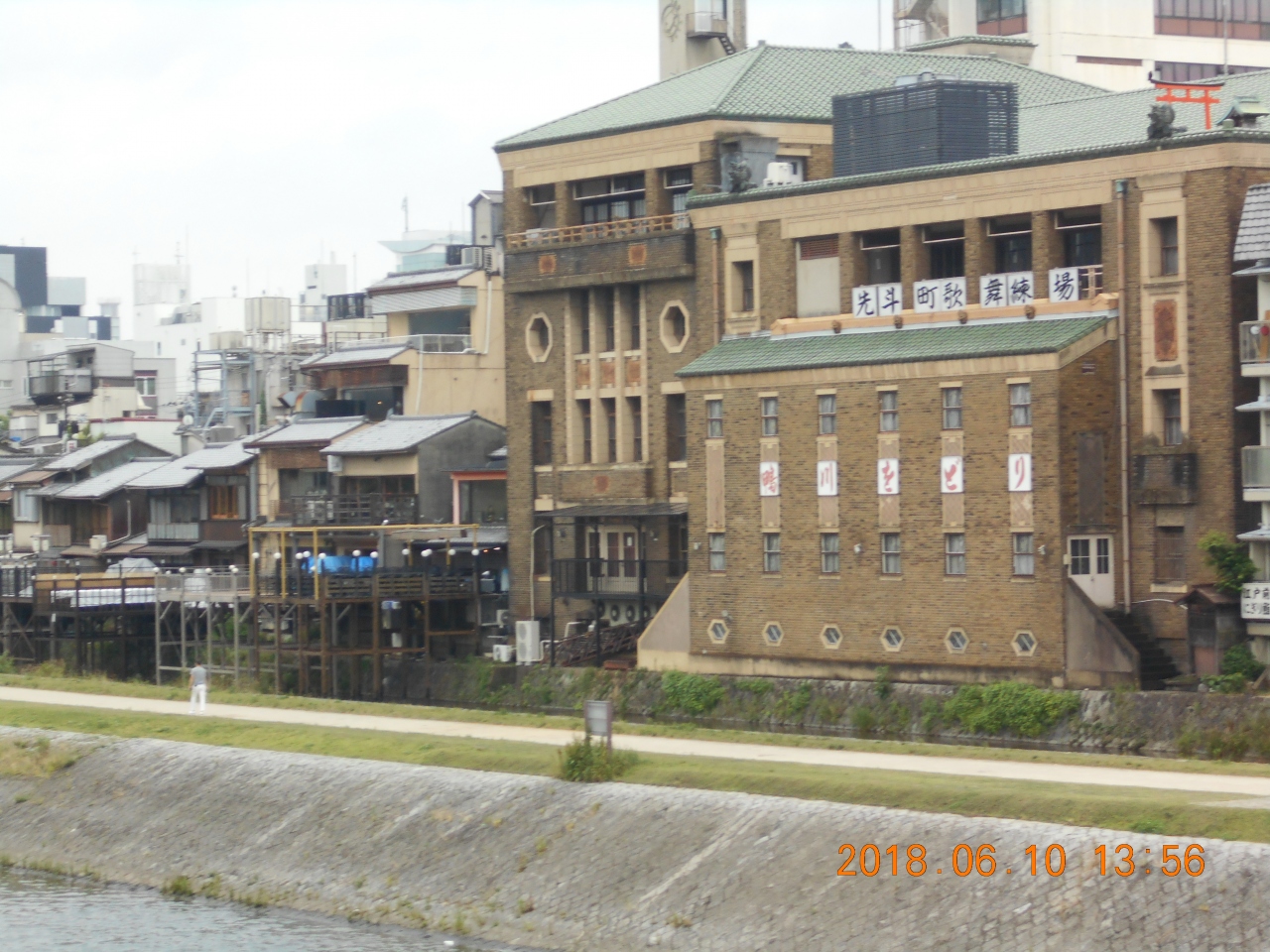 三条大橋を渡っていると 大きく建物に文字が出ていたので あそこなんだと見当をつけて建物の前まで行ったのですが 橋の上からのほうが建物全体の様子はよくわかります。