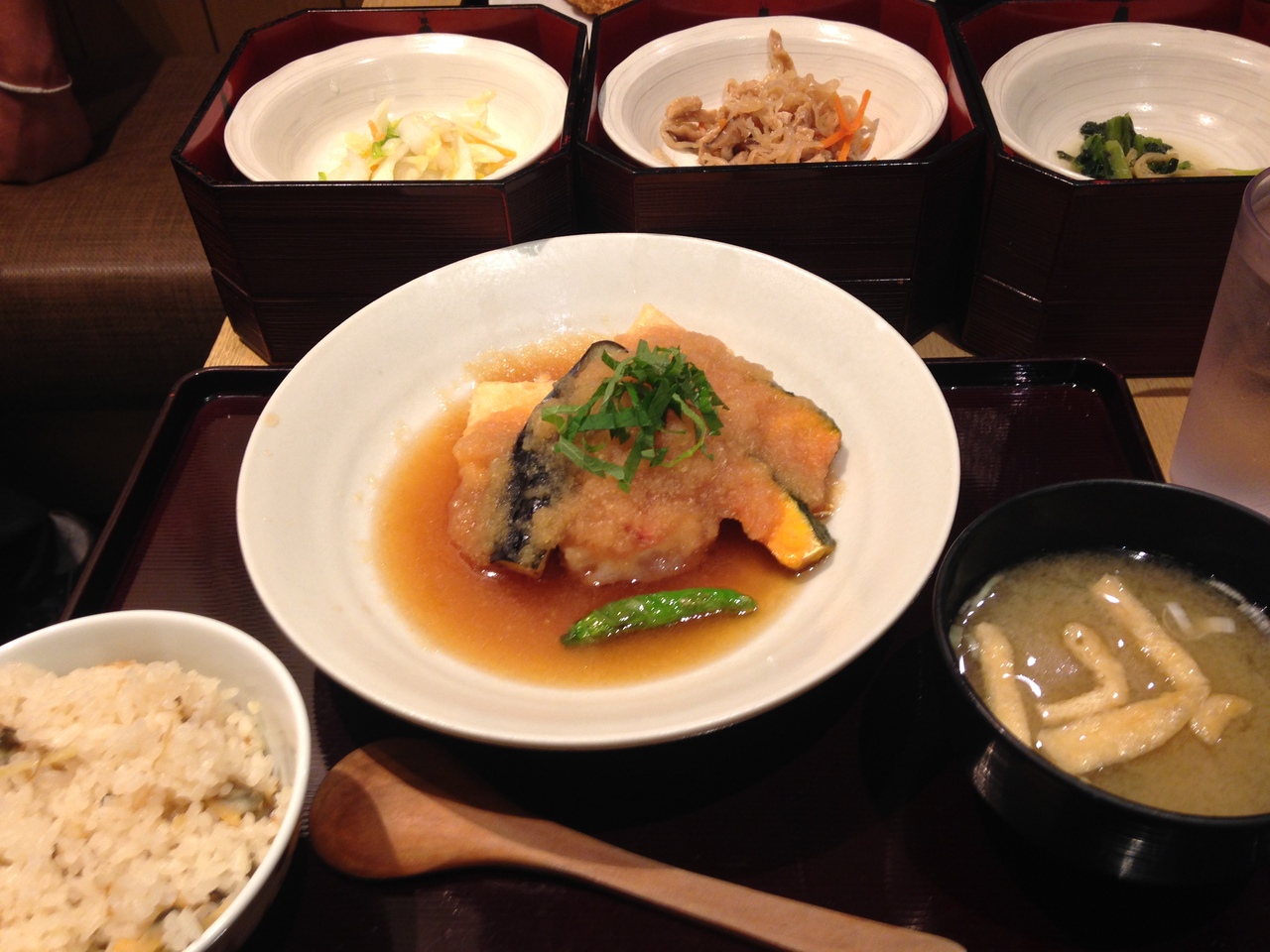 ランチには、白米、雑穀米、季節の炊き込みご飯のごはん3種類がお代わりできます。
