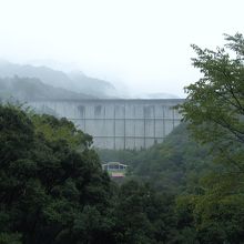 ダム堤体にゲートが無いため放水しているところが見えなくて残念ですが、ダムは周囲の自然と調和して全体的にすっきりした印象になっています。