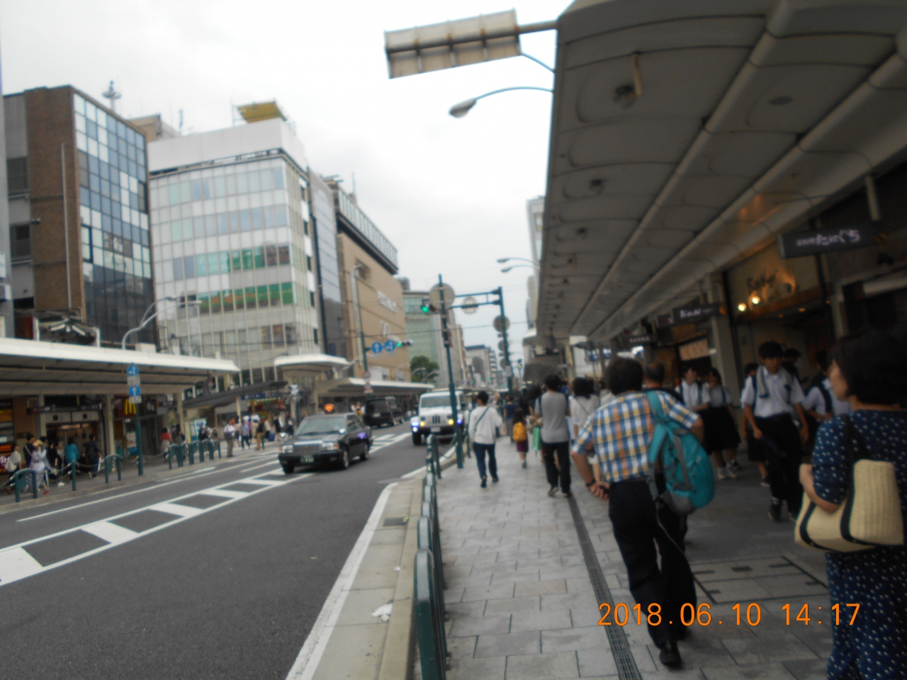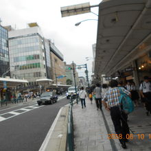 三条からあまり人通りのない先斗町を通ってきて四条通に出ると 人であふれかえってとても賑やかな様子で 時間帯によって それぞれの賑わいの違いを感じます。広い車道には多くの車やバスが ひっきりなしに走っていて 生活にも観光にも重要な役割を持った通りです。