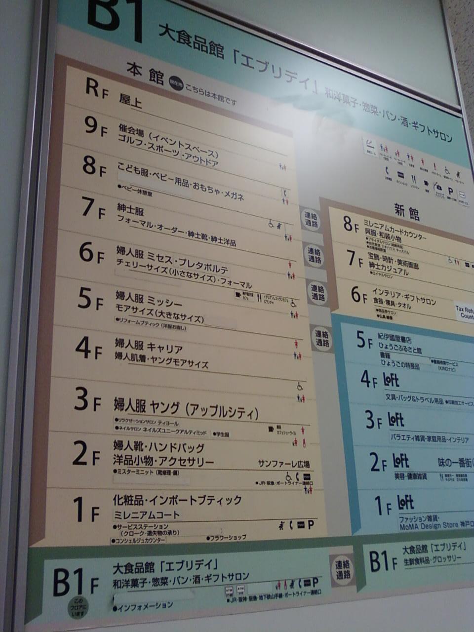 神戸そごうは、神戸駅からすぐのところにあります。マルイの正面、三宮サンロード商店街も近いです。新館と本館に分かれていて、新館はロフト、紀伊国屋書店などが入り、本館の方は主にレディースを多く扱う店舗が入っています。特にすごいのは新館と本館にまたがる、地下一階の大食品館エブリディです。神戸らしい食材の数々、店舗が結集しています。