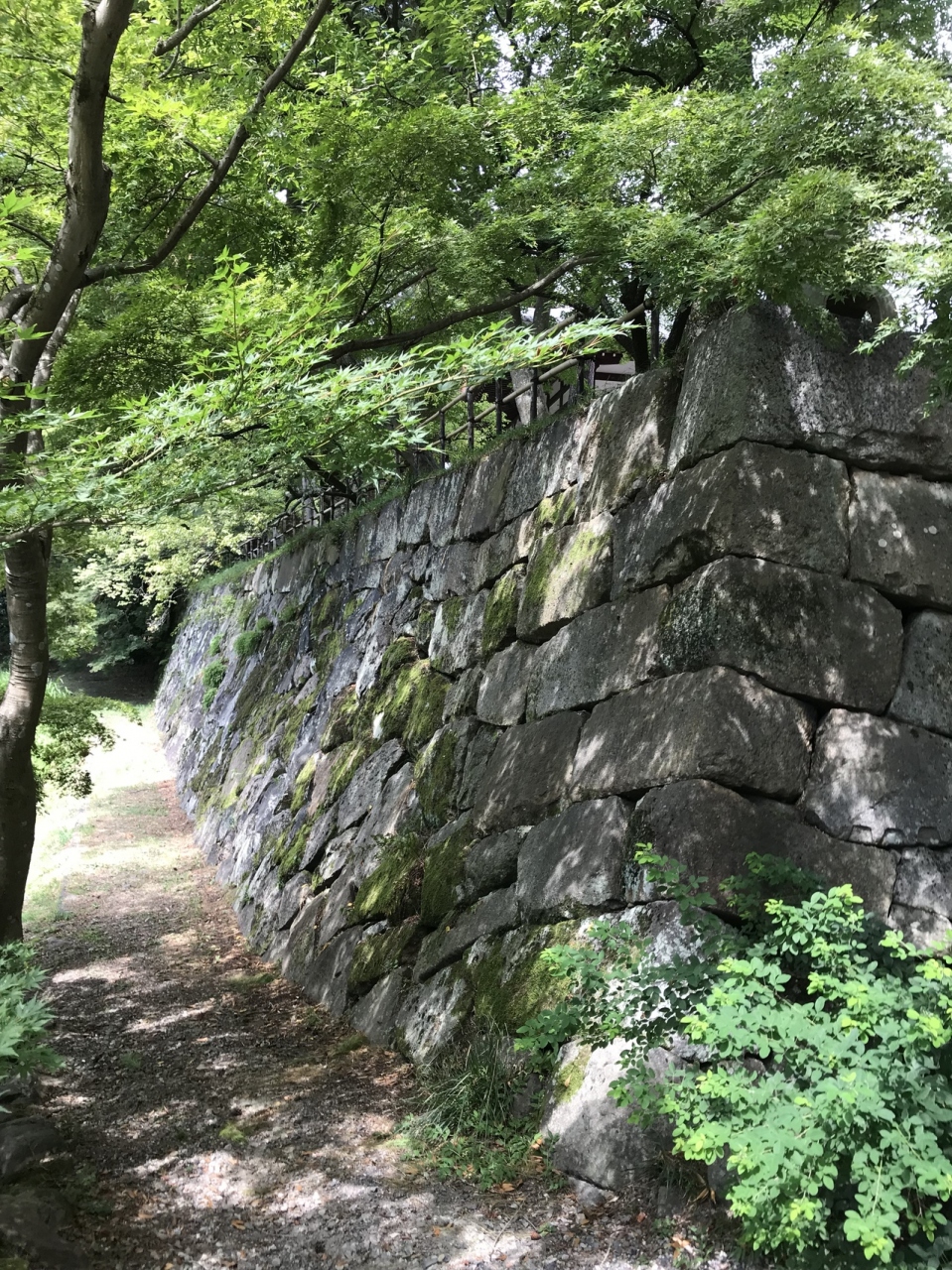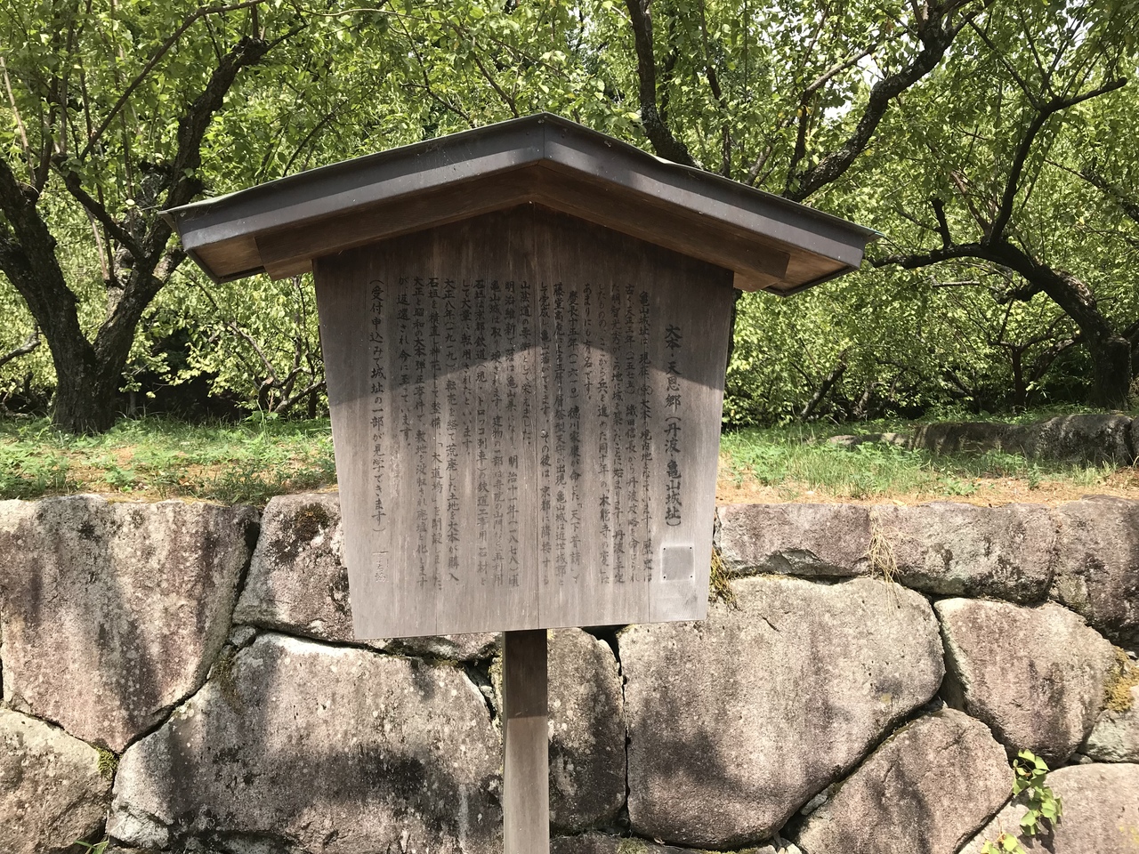 亀岡城跡内部は宗教団体敷地なので無断で入ることは出来なかった。本丸跡・内堀跡・石垣は敷地内にある。