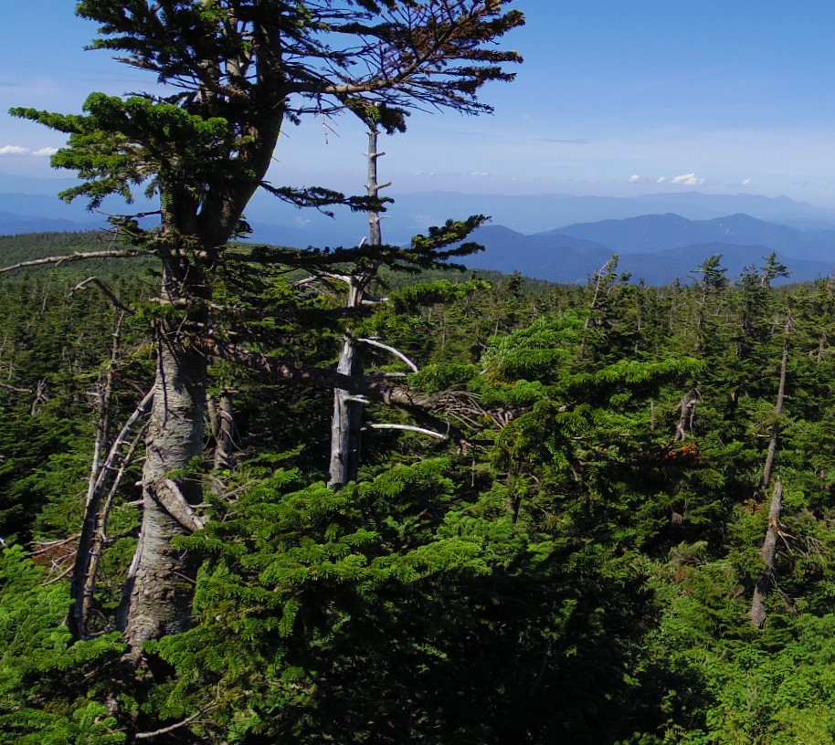 八幡平山頂展望台から、晴れていると、秋田方面、岩手方面に遠く折り重なる山々が見えて絶景です。