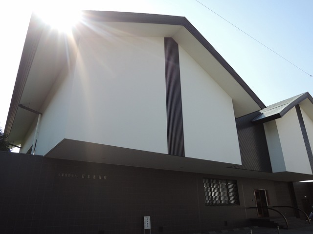 瑞輪寺正門に向かう道の左側に、お洒落な窓のない白壁の建物が二つ並んでいました。何の建物かと思ったら日本美術院の建物でした。日本画の「院展」を主宰している日本美術院の名前は知っていましたが谷中にあるとは知りませんでした。