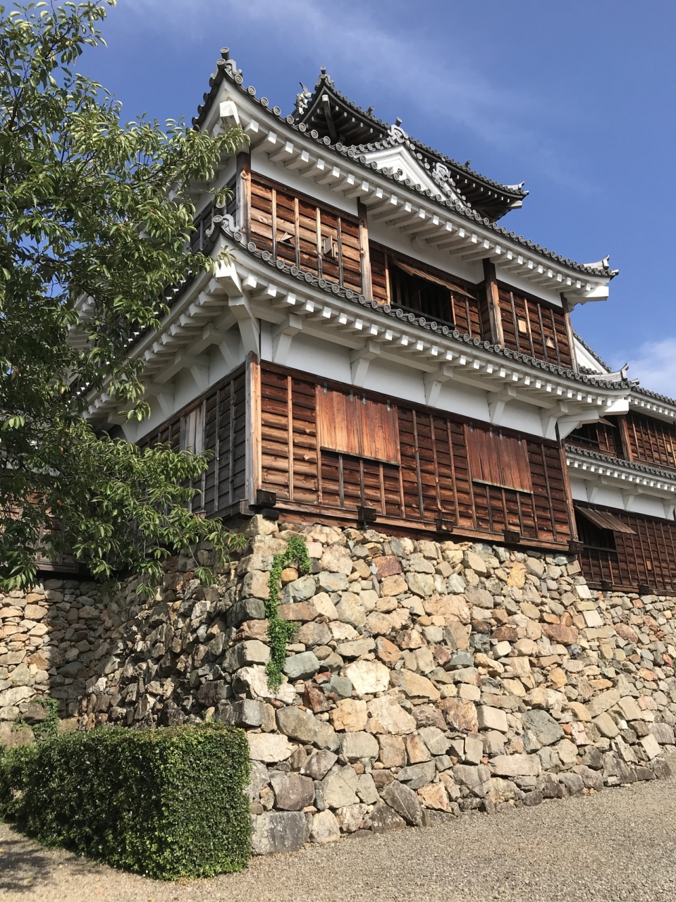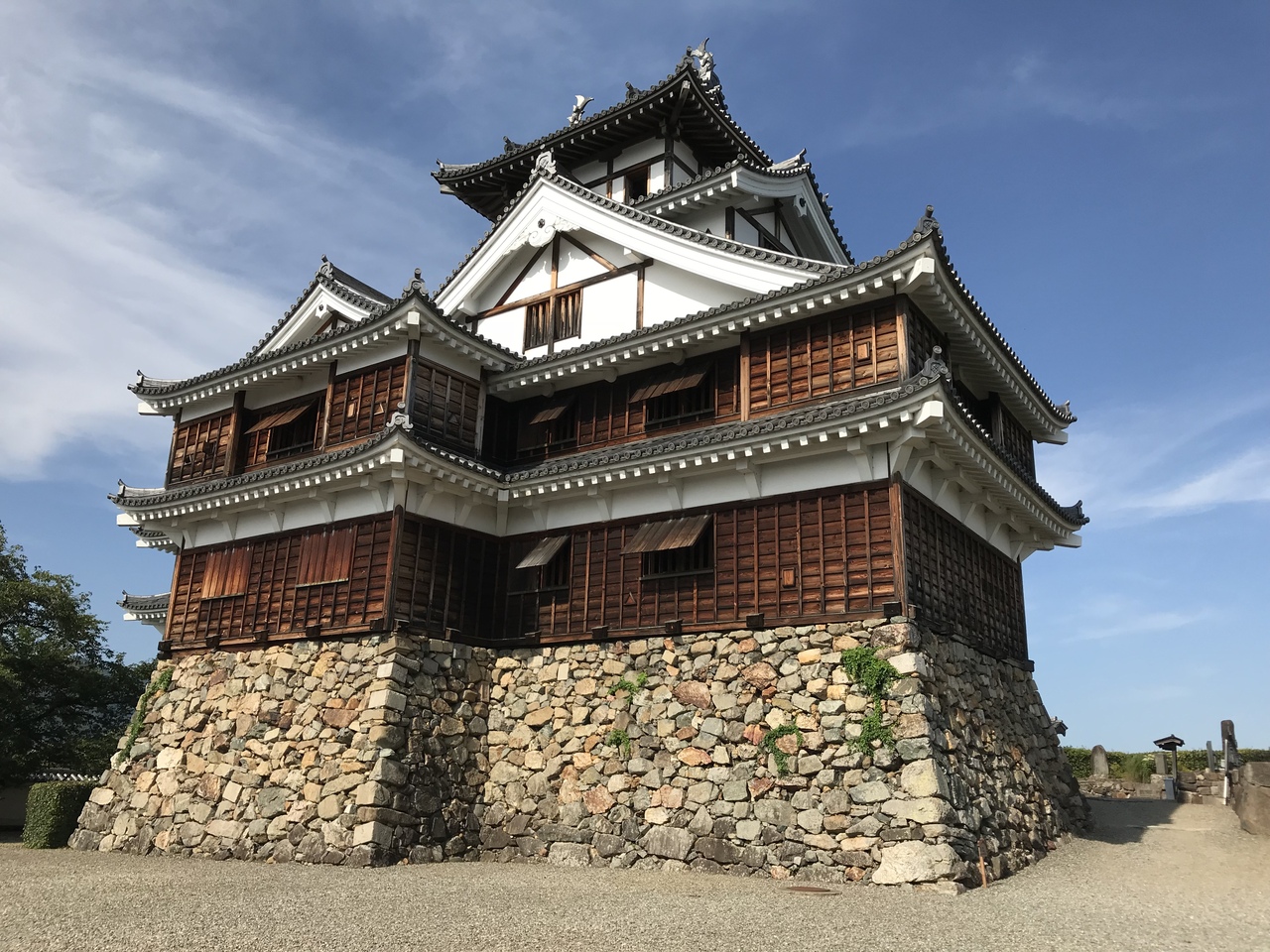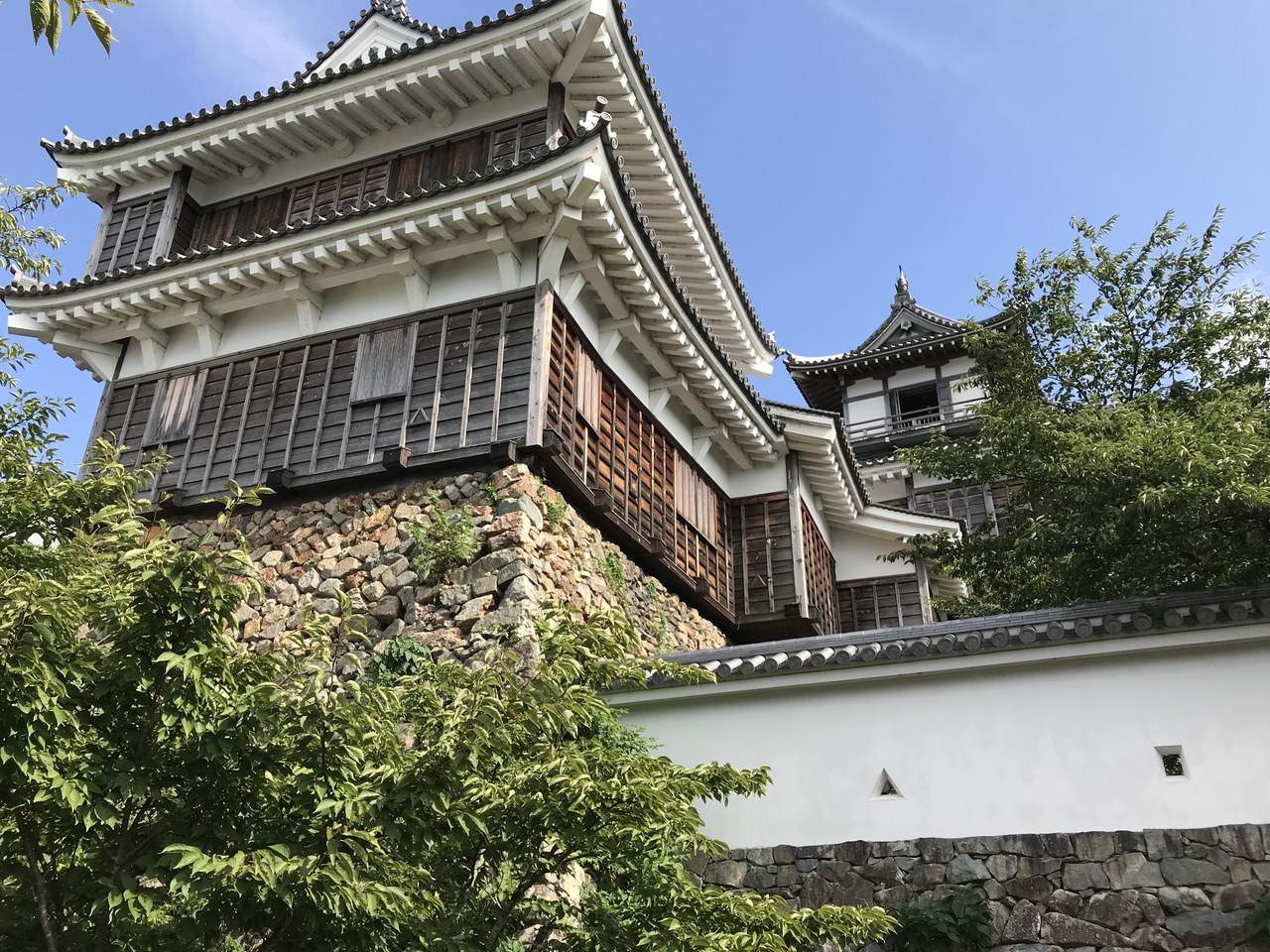 外見を復元された天守閣は、黒壁が威武堂々さを引き立てて、戦国期の城らしさを感じる。
