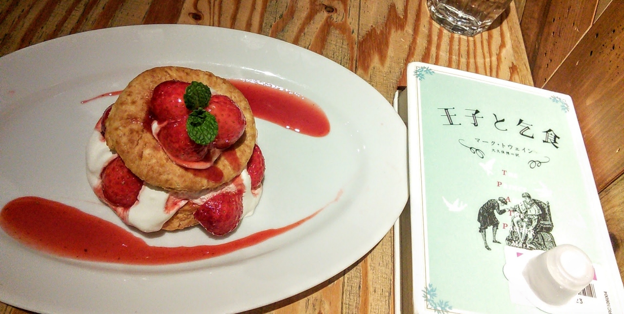 アメリカンスタイルのいちごのショートケーキをいただきした。日本のショートケーキとは違い、スコーンに似たさっくりしたビスケットで、苺と生クリームをサンドしたものです。BBC「ブラウン神父」に出てくる、マッカーシー夫人の自慢の苺のスコーンも、このようなものなのかもしれません。