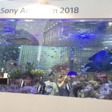 銀座をフラフラと歩いていてたまたま見つけました。大きな水槽があり沖縄の美ら海水族館から魚たちが来ていました。見ているだけで面白くたくさんの人が写真を撮っていました。他にもラジオの収録場やトラヤカフェなどもありました。