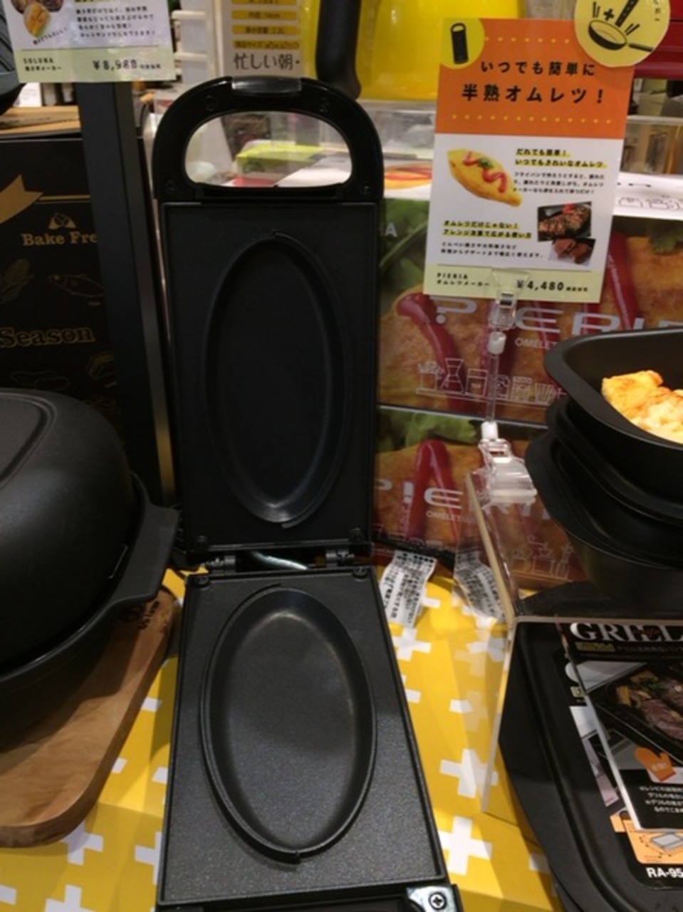 みなとみらいのマークイズの3階にあるキッチン雑貨のお店です。型に卵液を流し入れて焼くだけで 簡単に半熟オムレツが出来るという器具が売ってました。興味津々でしたが、4480円と少しお高めの価格でした。他にも面白い調理器具が 販売されており みてるだけで面白かったです。
