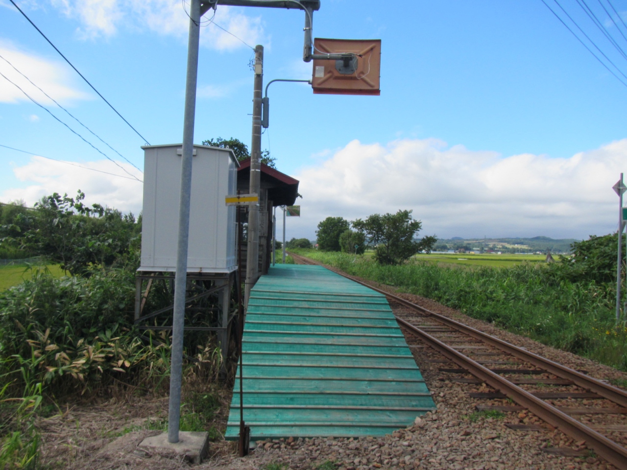周辺は田園風景で農家が点在しますが、この辺りでは、駅のすぐ近くを深川留萌自動車道が通っていて、車が飛び交う音がしてそれほど寂しくありません。
