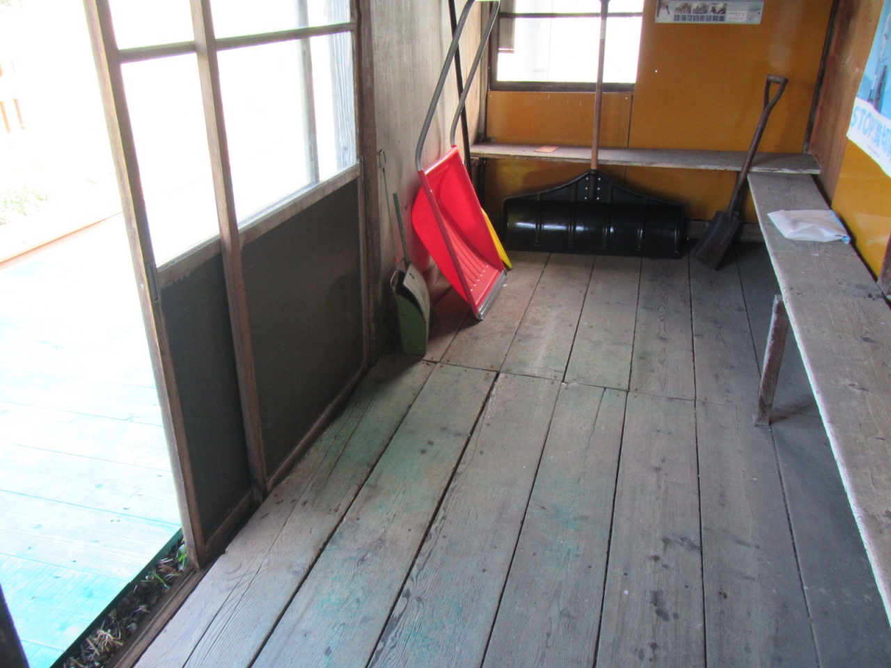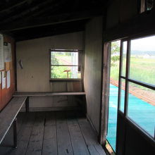 木製板の縁台のようなホームに粗末な小屋が併設した無人駅です。