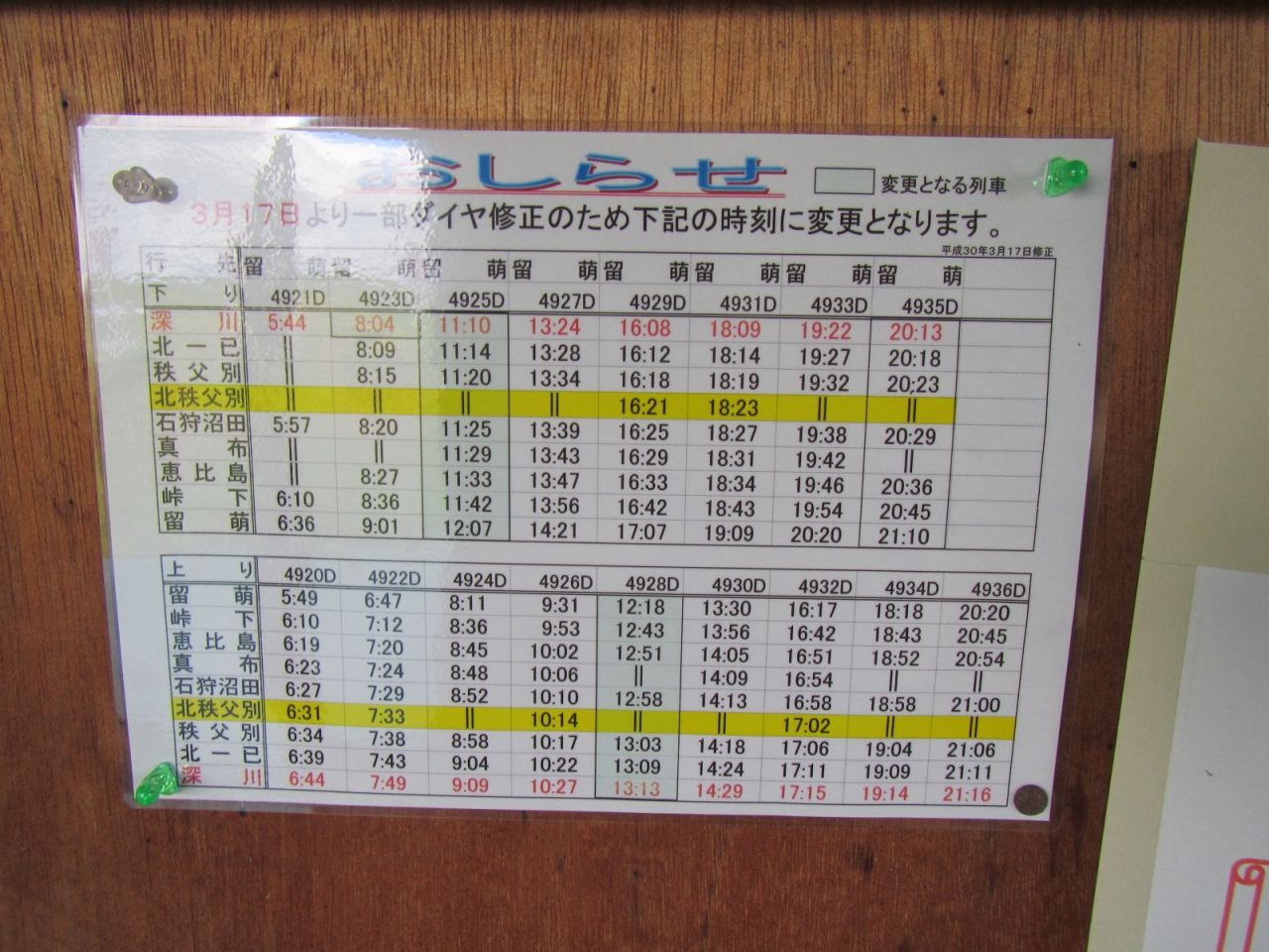 停車する上下線の列車の数も違い、列車で訪問するなら、現在のところ夕方の16時~18時台の停車する上下線が近接した時間帯を狙うしかありません。