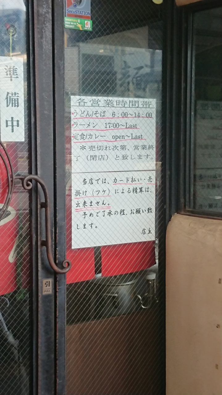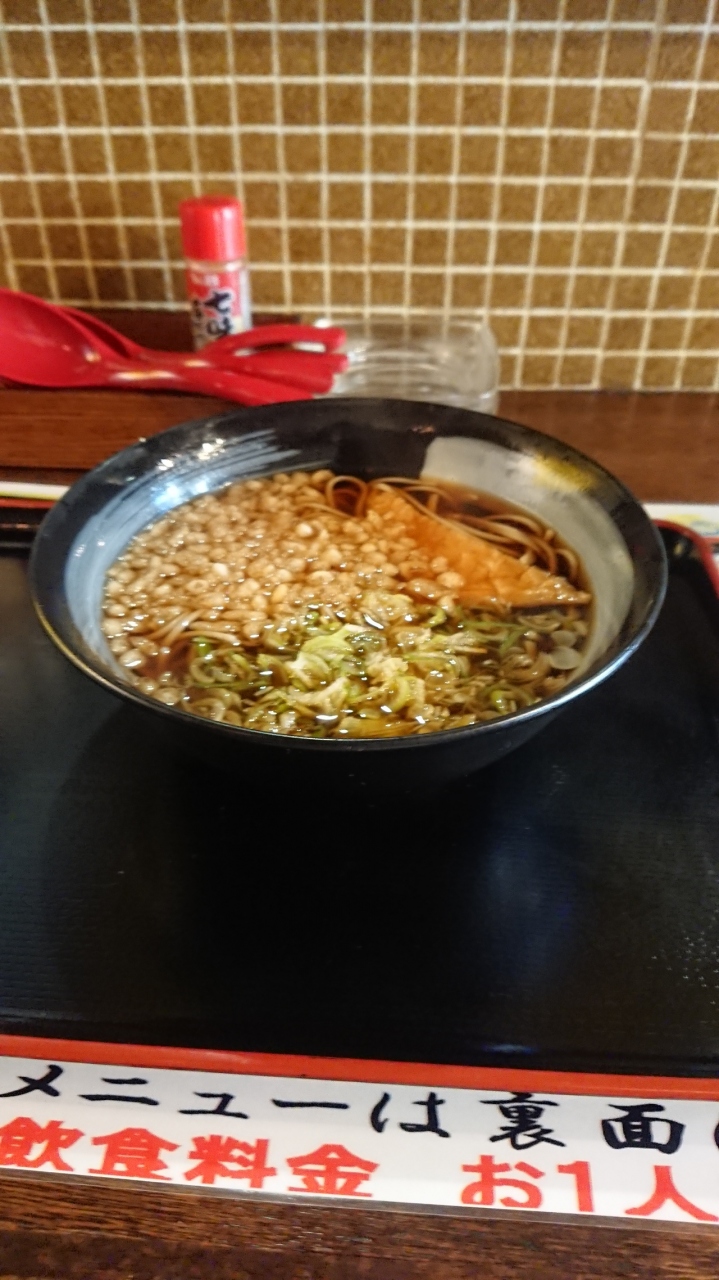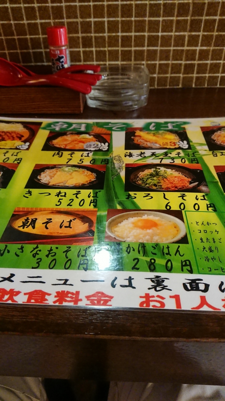 高岡駅前、ロータリーの向かい側にある蕎麦屋さん。早朝から夜まで営業しているようで、朝食がてらに行きました。高岡駅内にある今庄と比べると、価格はやや高めな設定です。が、こちらは蕎麦屋と言いつつ、ラーメンからどんぶりまでメニューも豊富で何でもアリという感じ。朝、7時過ぎに訪れたら、客は自分1人。朝食ということで、朝蕎麦300円をオーダー。朝蕎麦は量が少なめで、ちと物足りない感じ。出汁はちょっと甘めでした。
