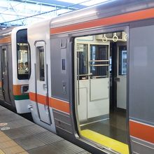 通常2又は3両編成での運転のなか、この列車は5両編成での運転で、4人掛けのボックスシートがある2両編成の313系と全席ロングシートの3両編成の211系が繋がれています。