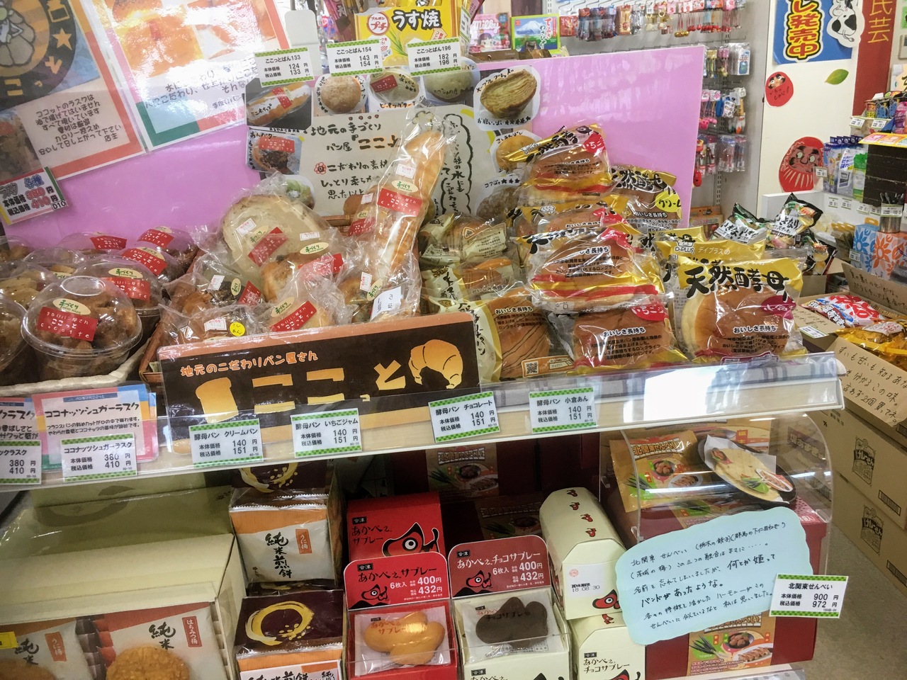 売店では、お菓子やドリンクのほかに、このパーキングエリアの近所のパン屋が作ったと思われるパンが売っていました。