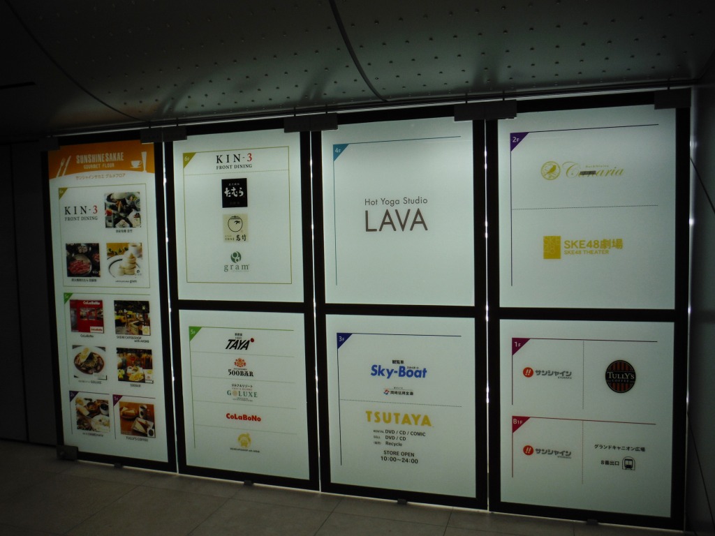 ビルに隣接している大観覧車を見てびっくりし、立ち寄ってみました。 観覧車以外はこれといった特徴もない商業施設で、お客もあまりいませんでした。 ただ2階に ”SKE48劇場” があったので公演日は結構混むのかもしれません。