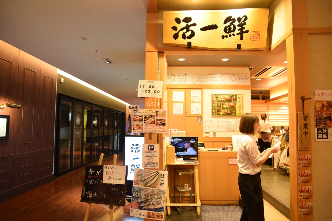 すすきのの中心近く、屋上に観覧車のあるビルの