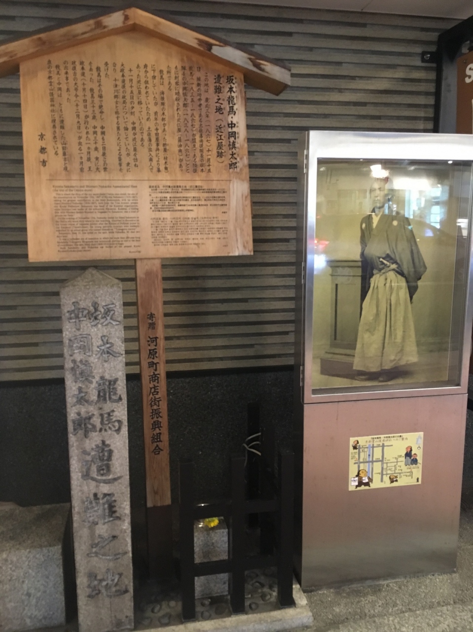 京都の河原町通りの繁華街ど真ん中に突如として4-5年前に現れました。ここが坂本龍馬が暗殺された近江屋なのですね。地元民ですが、この看板が立つまで恥ずかしながら全くしりませんでした。京都にきたら恐らく一度は通る場所なので、幕末好きの方は必見です!