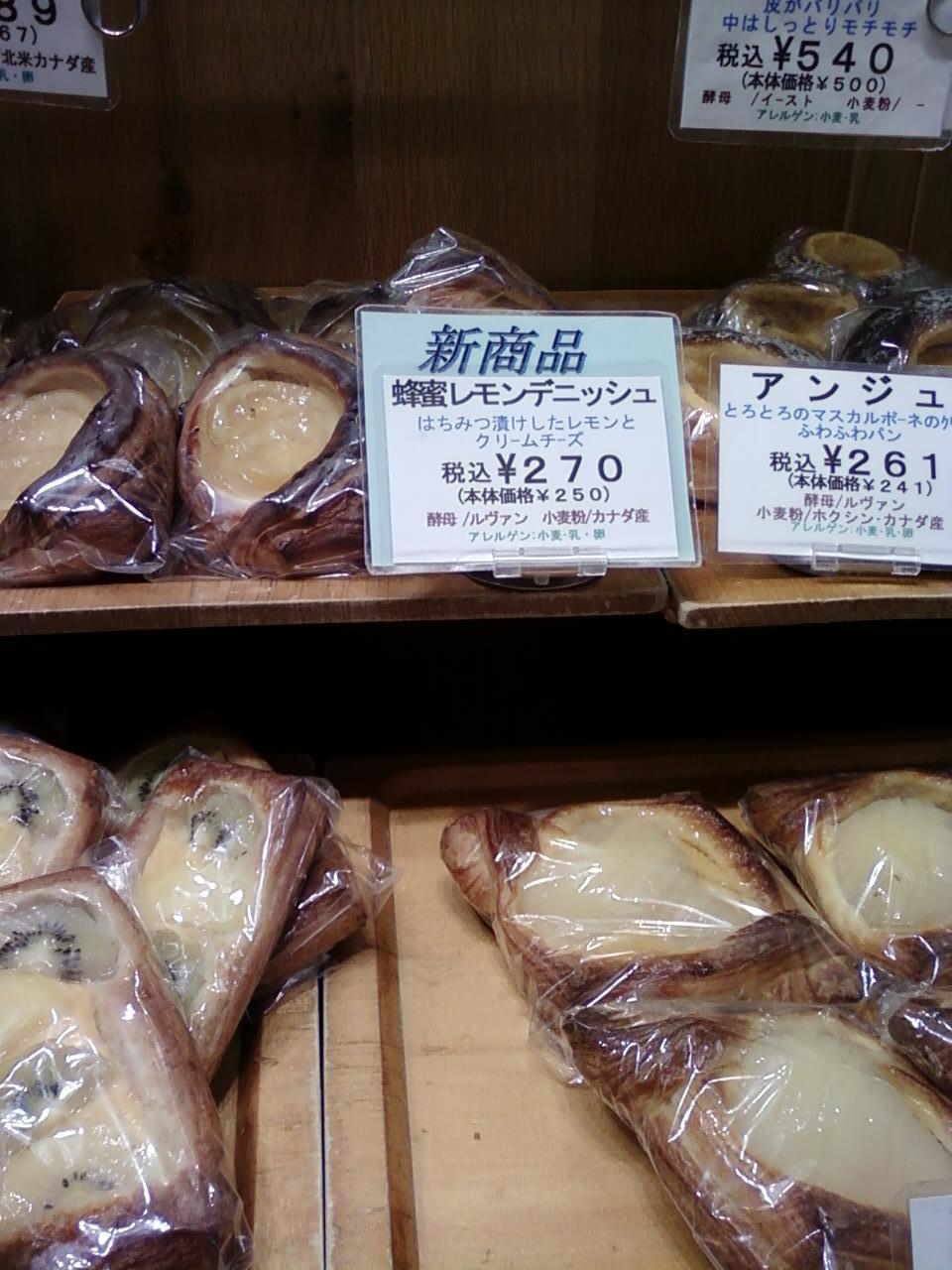 ここの柿の木坂キャトルは、東急東横線および横浜市営地下鉄グリーンラインの日吉駅に隣接した、東急ストアの一階にあります。キャトルさんとしては初めて見ましたが、パン屋さんも兼ねています。店舗の半分のスペースがいつもの生ケーキや焼き菓子、半分が食パンや菓子パンなどの売り場になっています。珍しいレモンのデニッシュを買ってみました。レモンの酸味とクリームの甘さのバランスは良いのですが、よく見ると底面が焦げていて、その苦味が残念でした。